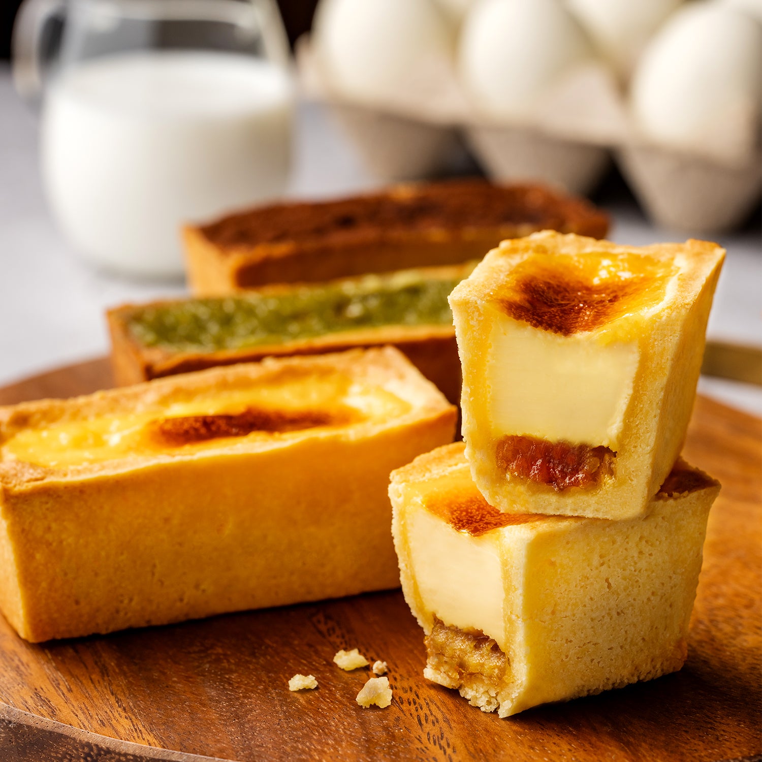 台湾の伝統菓子「鳳梨酥(パイナップルケーキ)」と、なめらかなカスタードを融合させた新感覚スイーツ「鳳梨酥蛋塔」。香ばしいクッキー生地に、濃厚カスタードと個性豊かなフィリングを組み合わせた、万華ならではの進化系台湾パインエッグタルトです。